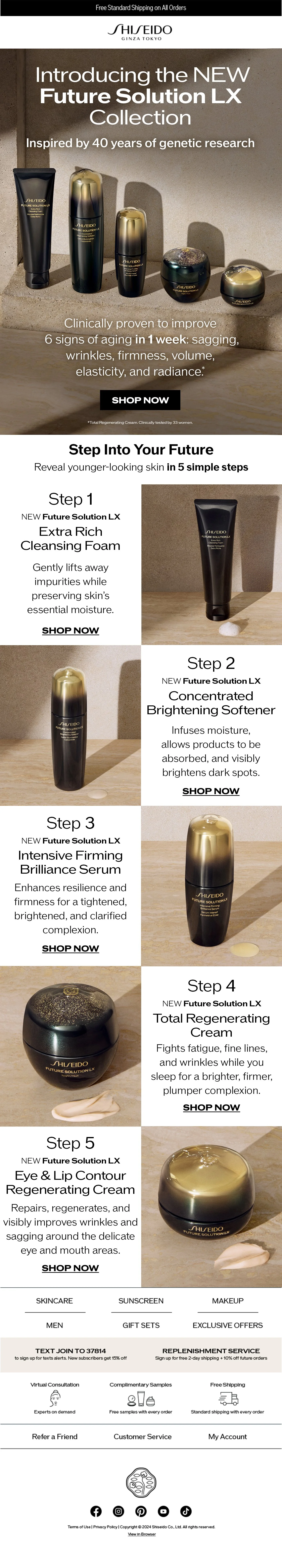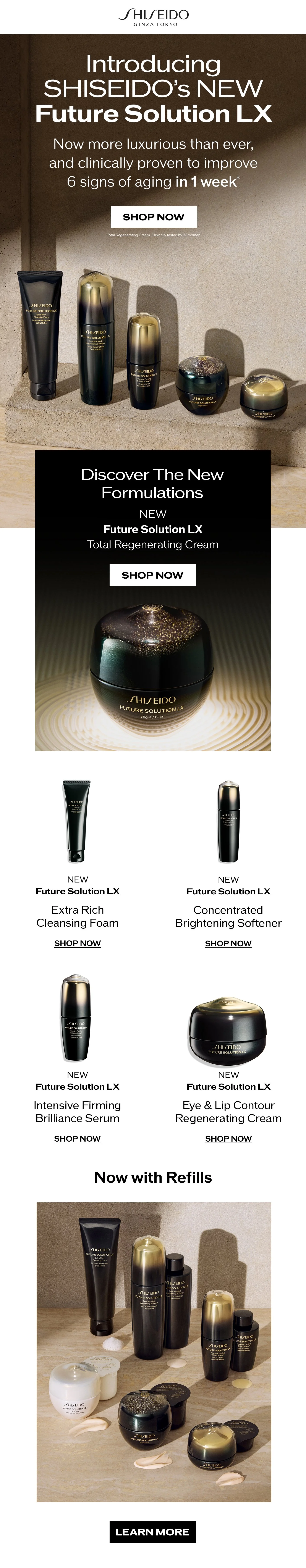 The design language underscores Future Solution LX’s status as Shiseido’s prestige skincare collection. Packaging nods to the heritage of Nishijin textiles and the brand’s century-old botanical magic—particularly the precious Enmei herb and LonGenevity Complex™—by echoing these subtle textures and organic tones through the campaign’s tactile materials and soft lighting. This approach supports the narrative of clean, modern elegance while embracing the refined “Japaneseness” that defines the brand’s identity.